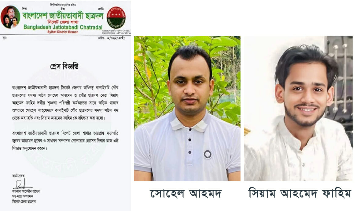 কানাইঘাটে চোরাচালান নিয়ে কলরেকর্ড ভাইরাল: পৌর ছাত্রদলের সদস্যসচিবকে অব্যাহতি
