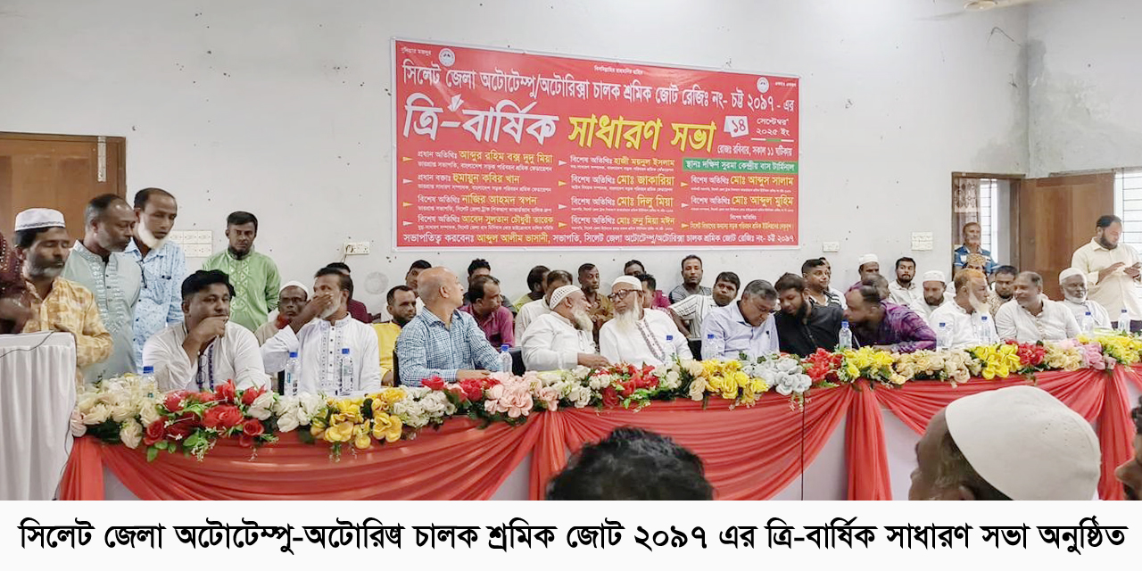 সিলেট জেলা অটোটেম্পু/অটোরিক্সা চালক শ্রমিক জোট (রেজিঃ নং চট্ট-২০৯৭)-এর ত্রি-বার্ষিক সাধারণ সভা রবিবার (১৪ সেপ্টেম্বর) দুপুরে সিলেট বাস টার্মিনালের সেট