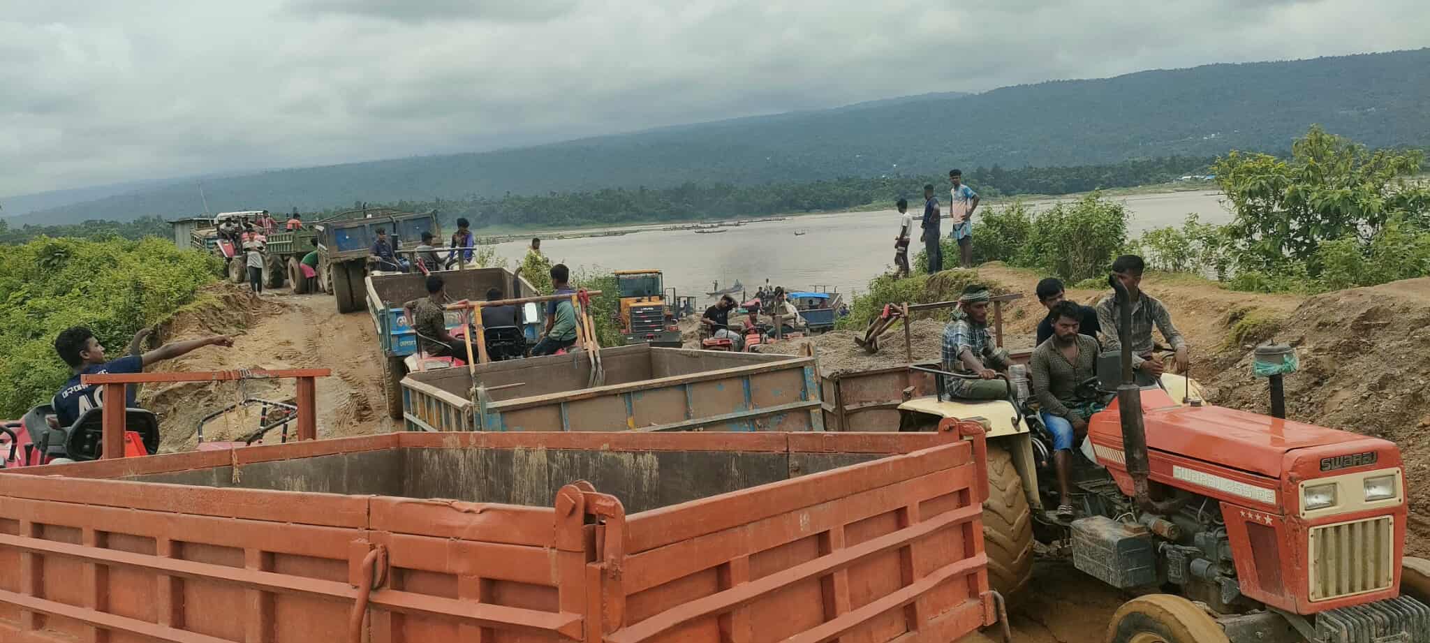 জাফলং নদীর বুকে ট্রাক-ট্রাক্টরের যানযট!