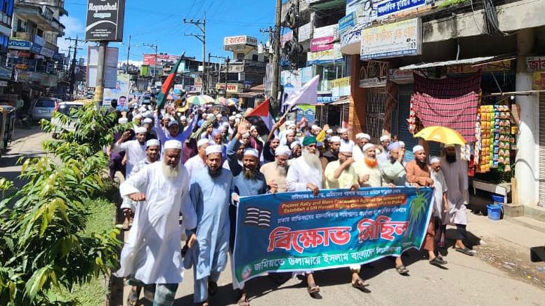 ঢাকায় জাতিসংঘ মানবাধিকার কমিশনের অফিস বন্ধের দাবিতে বিয়ানীবাজারে জমিয়তের বিক্ষোভ