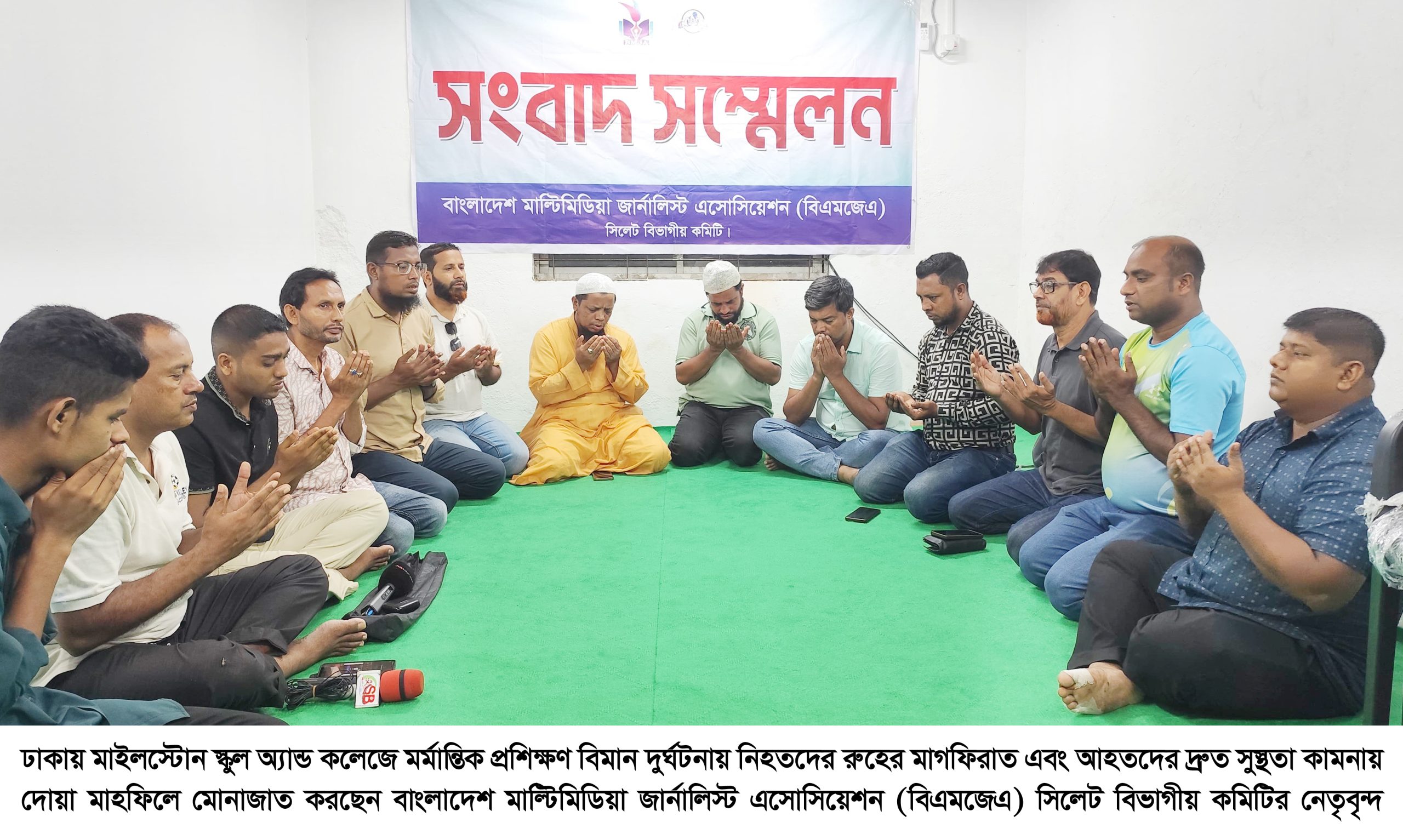 মাইলস্টোন বিমান দুর্ঘটনায় নিহতদের মাগফিরাত কামনায় বিএমজেএ সিলেটের দোয়া